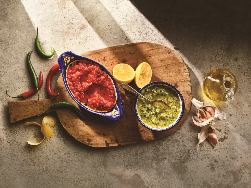 A spoonful over labneh or hummus wakes up the entire bowl.